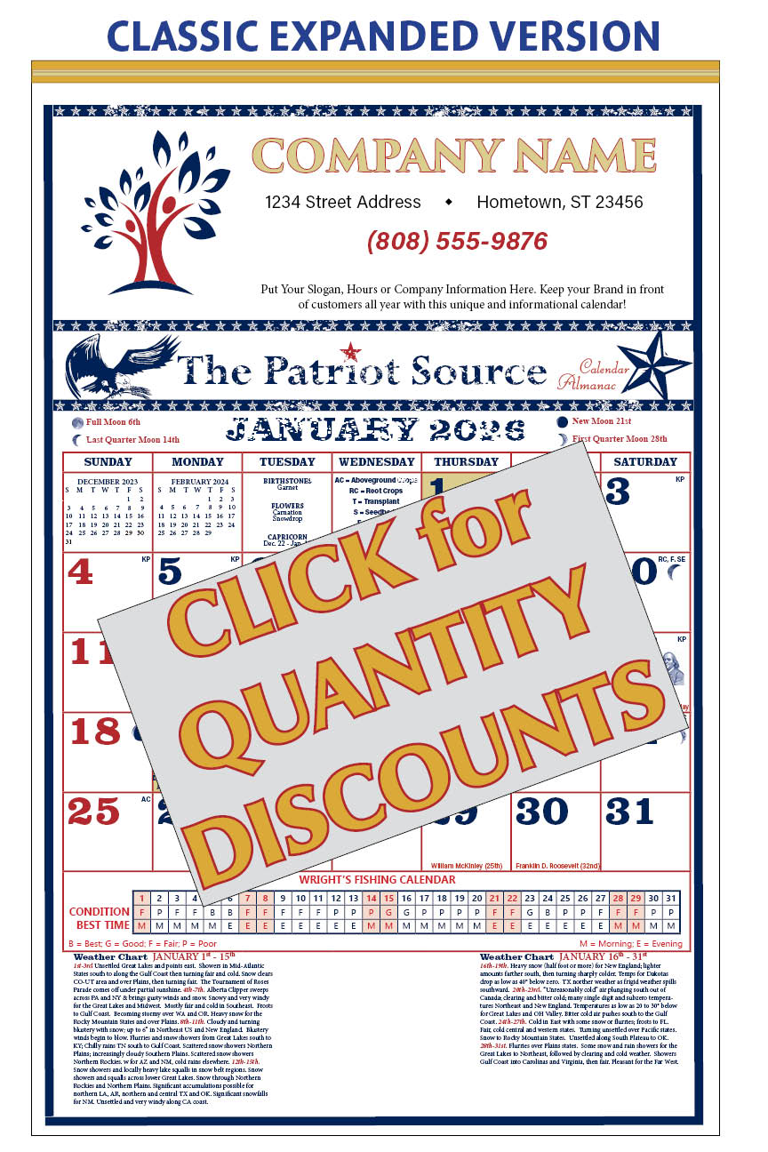 112419 - CLASSIC EXPANDED PATRIOT SOURCE ALMANAC CALENDAR (Tinned Binding) w/ Free Mini Almanac